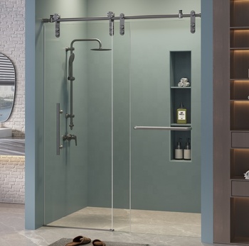 Almacén de Estados Unidos Dropshipping Ruedas grandes Acero inoxidable Sin marco Puerta de ducha de vidrio deslizante América